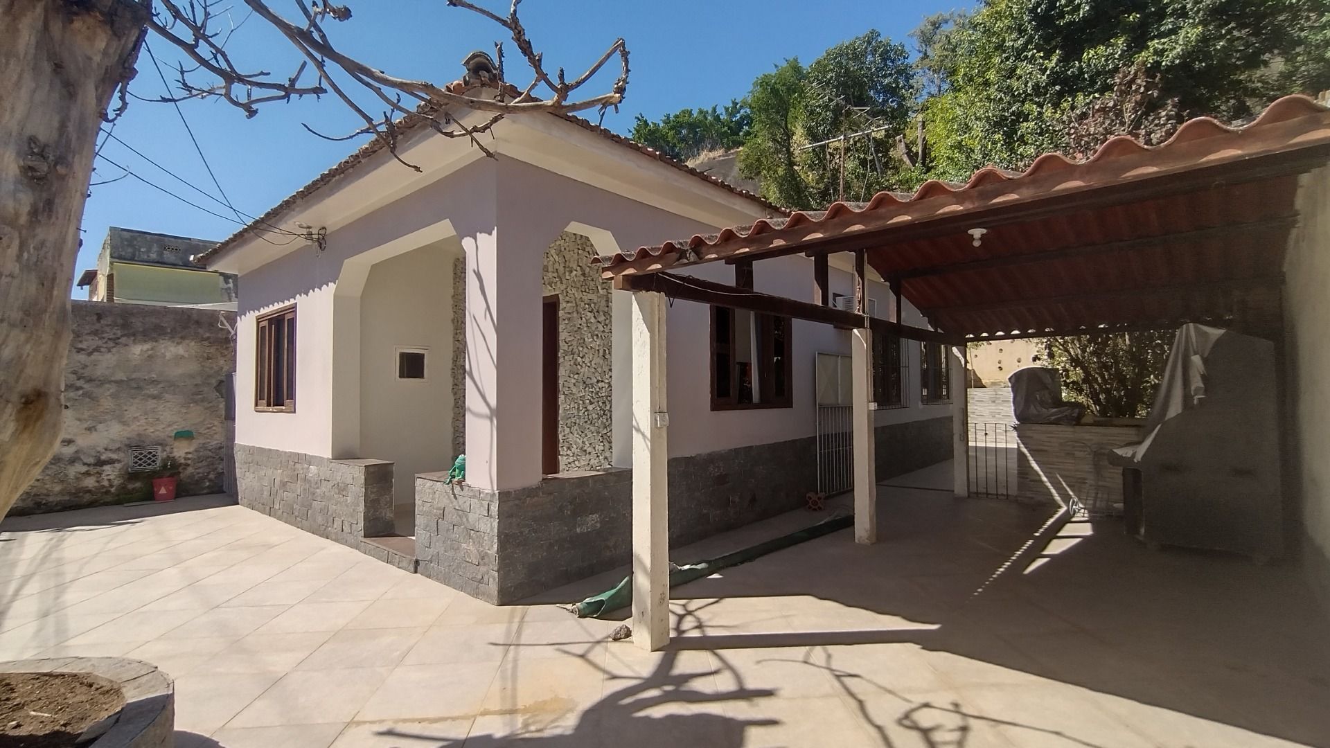 Residência em rua fechada, bem localizada, com terreno de 360.00m², arvores frutíferas, (jabuticaba, acerola, amora, goiabeira), tudo bem próximo à rua Coronel Serrado, uma das principais vias de São Gonçalo, próxima a vários comércios e condução.Imóvel linear com varanda, sala, 2 quartos, 1 deles com closet, 1 banheiro social, copa, cozinha, pequeno cômodo nos fundos, churrasqueira e garagem (espaço para 2 carros ou mais).Para quem gosta de contato com a natureza, o imóvel tem ótima área verde nos fundos.