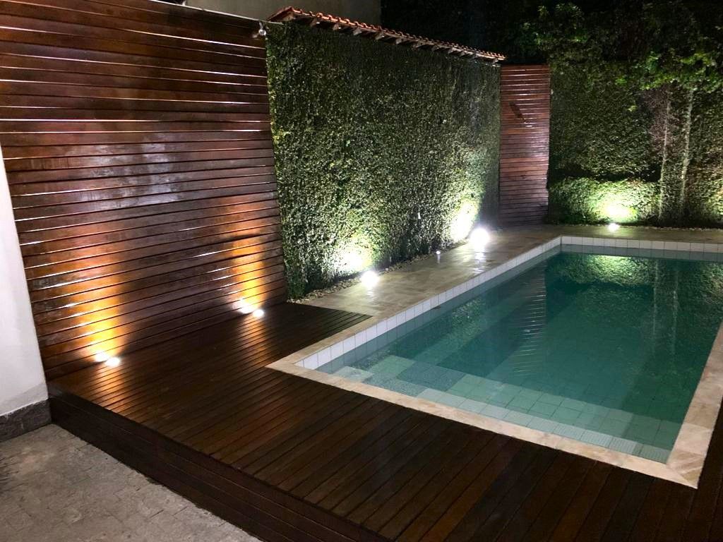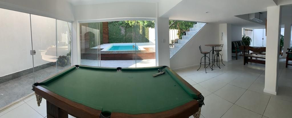 Excelente casa duplex, super bem montada, fino acabamento, com piscina, sauna, churrasqueira e imensa varanda fechada. Toda ampla, ensolarada, arejada e em local seguro. A casa comporta duas famílias, com entradas independentes.Composta por: No nível da Rua Uma varanda, 4 quartos sendo 1 suíte, salão subdividido em: estar, jantar e tv; living, banheiro social, lavabo, copa/cozinha, área de serviço, dependência completa de empregados, sistema de recolhimento e abastecimento de águas pluviais, jardins e garagem. No andar de baixo:Acessibilidade para PNE no nível da área de lazer - 2 suítes, living, sala, cozinha e lavanderia; lazer privativo com: salão de jogos, sauna, piscina, chuveirão, churrasqueira completa e lavatório com lavabo. Garagem para 3 carros cobertos e mais 2 descobertos. Ficam 8 aparelhos de ar-condicionado. Portão elétrico, câmeras, todo montado com armários, podendo ser vendido com porteira fechada a combinar.Acabamentos em granitos, pedras rústicas, madeiras de lei e porcelanato. Áreas molhadas revestidas até o teto com elementos cerâmicos. Sistema de energia fotovoltaica recém implantado gerando custo zero na conta, podendo ser negociado na venda.Sistema de captação de águas de chuva para reuso.O proprietário aceita imóvel de menor valor como parte do pagamento, e também veículo.